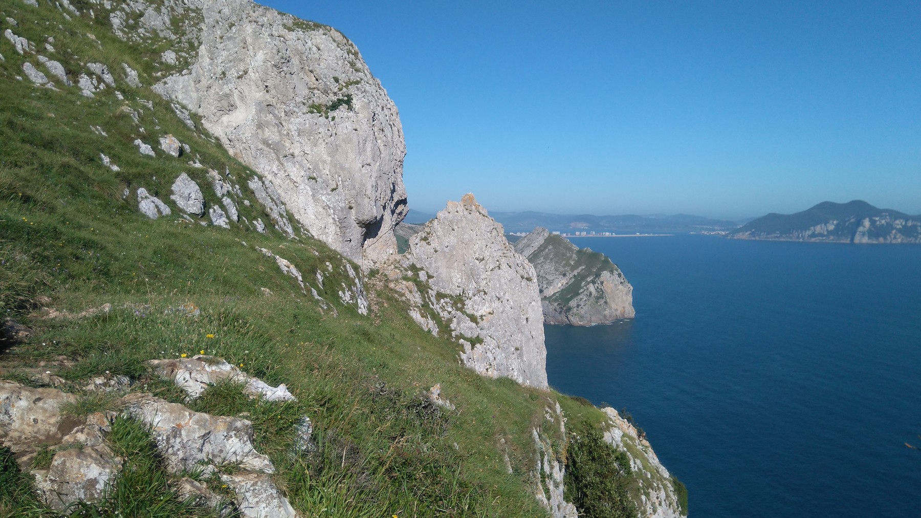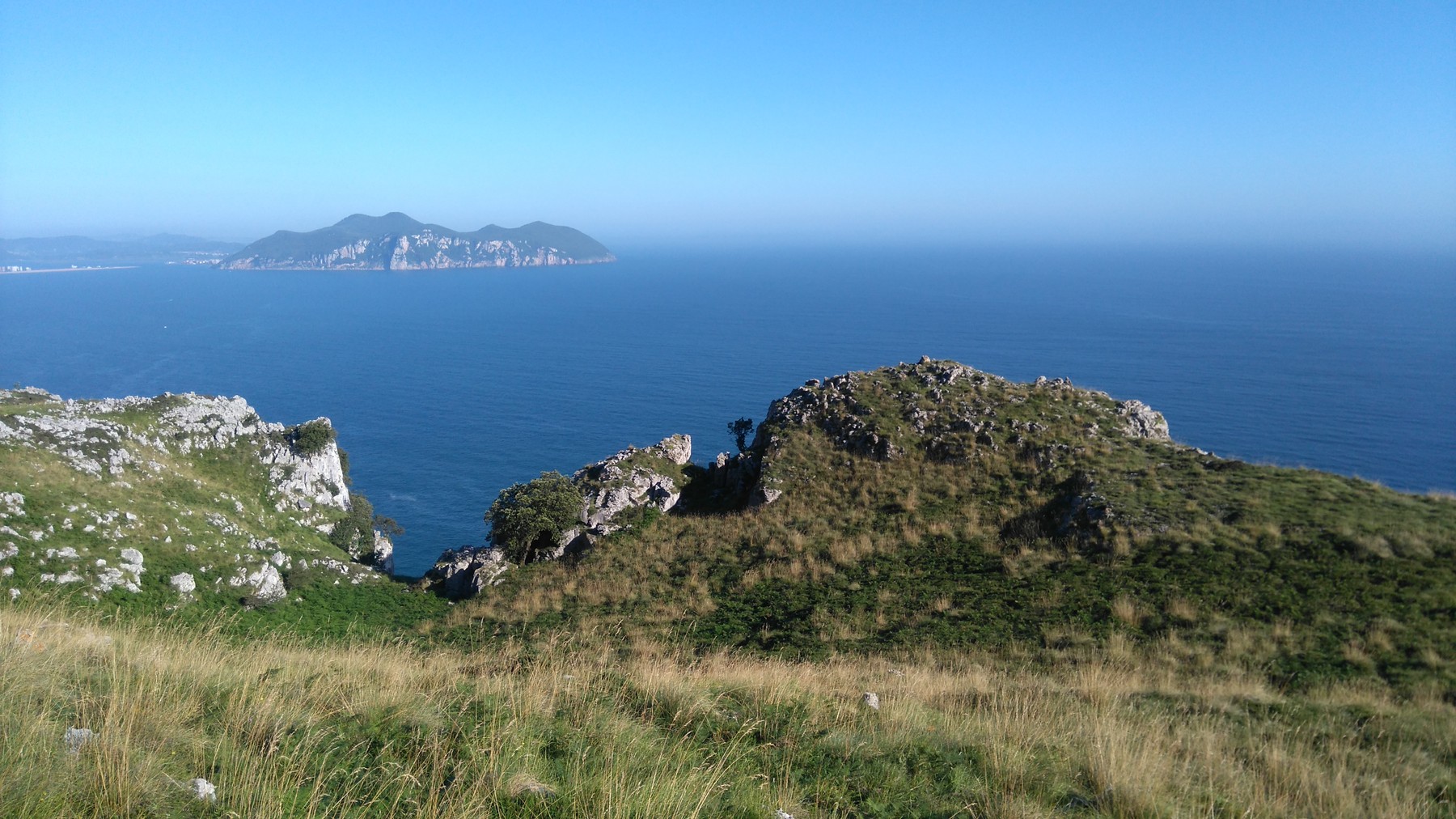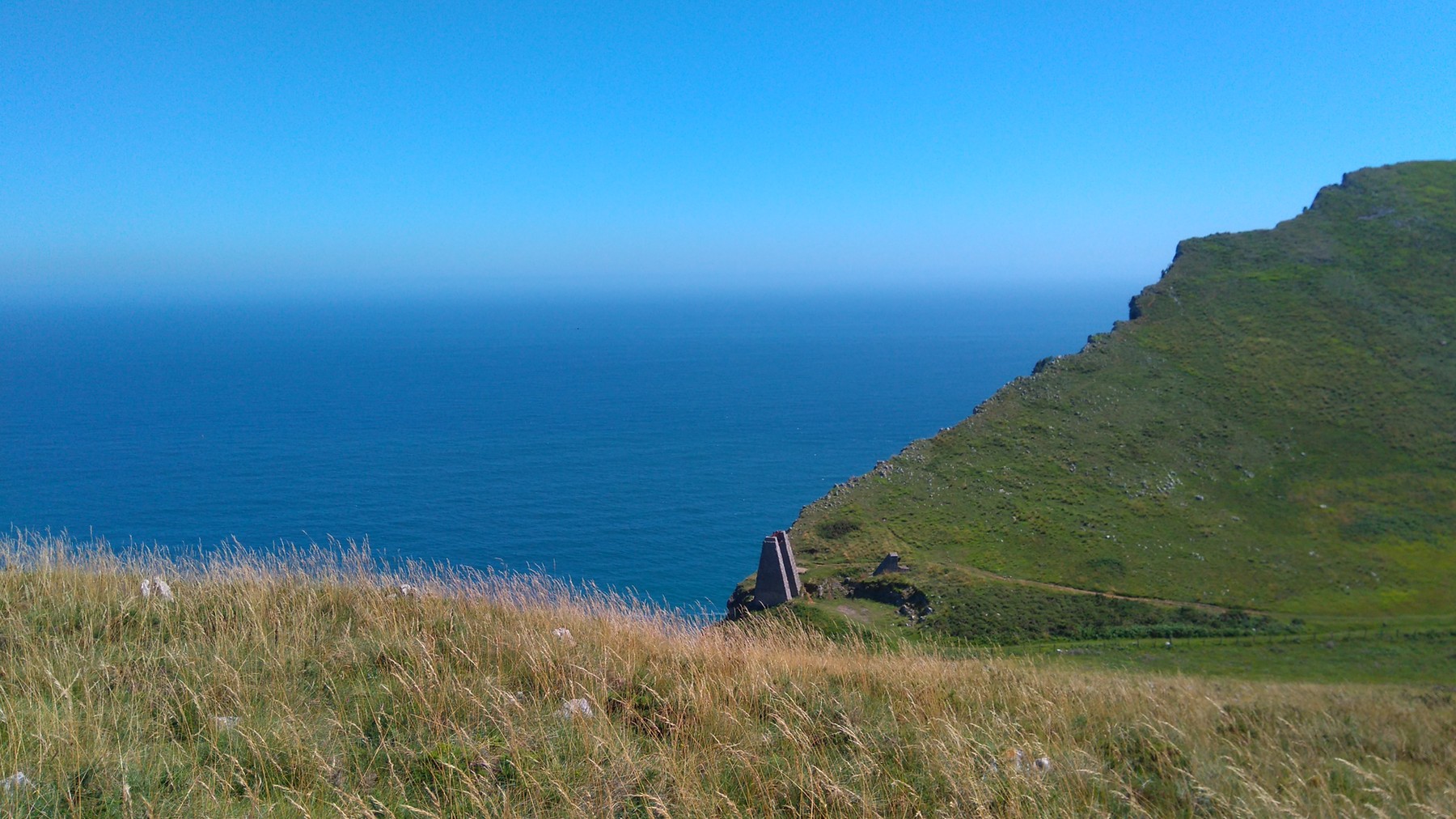 V dalších chvílích intenzivně vnímám krásu okolí. Slunce, moře, vítr… cítím se rozjařeně. Takže když narazím na další nástrahu téhle hory, je to trochu šok. Pohodlná pěšina travnatou planinkou zatáčí kolem skalnatého výběžku přímo nad útesem spadajícím strmě tak 200 metrů do moře.